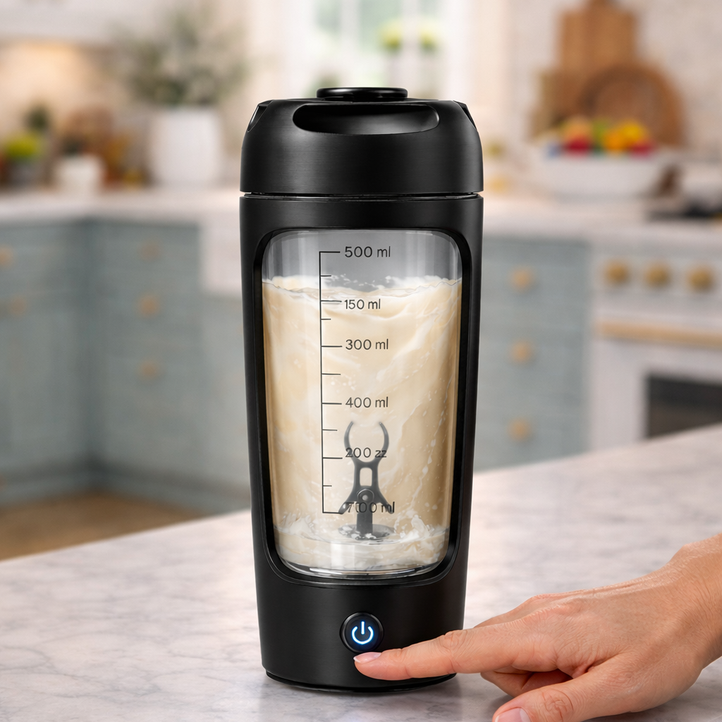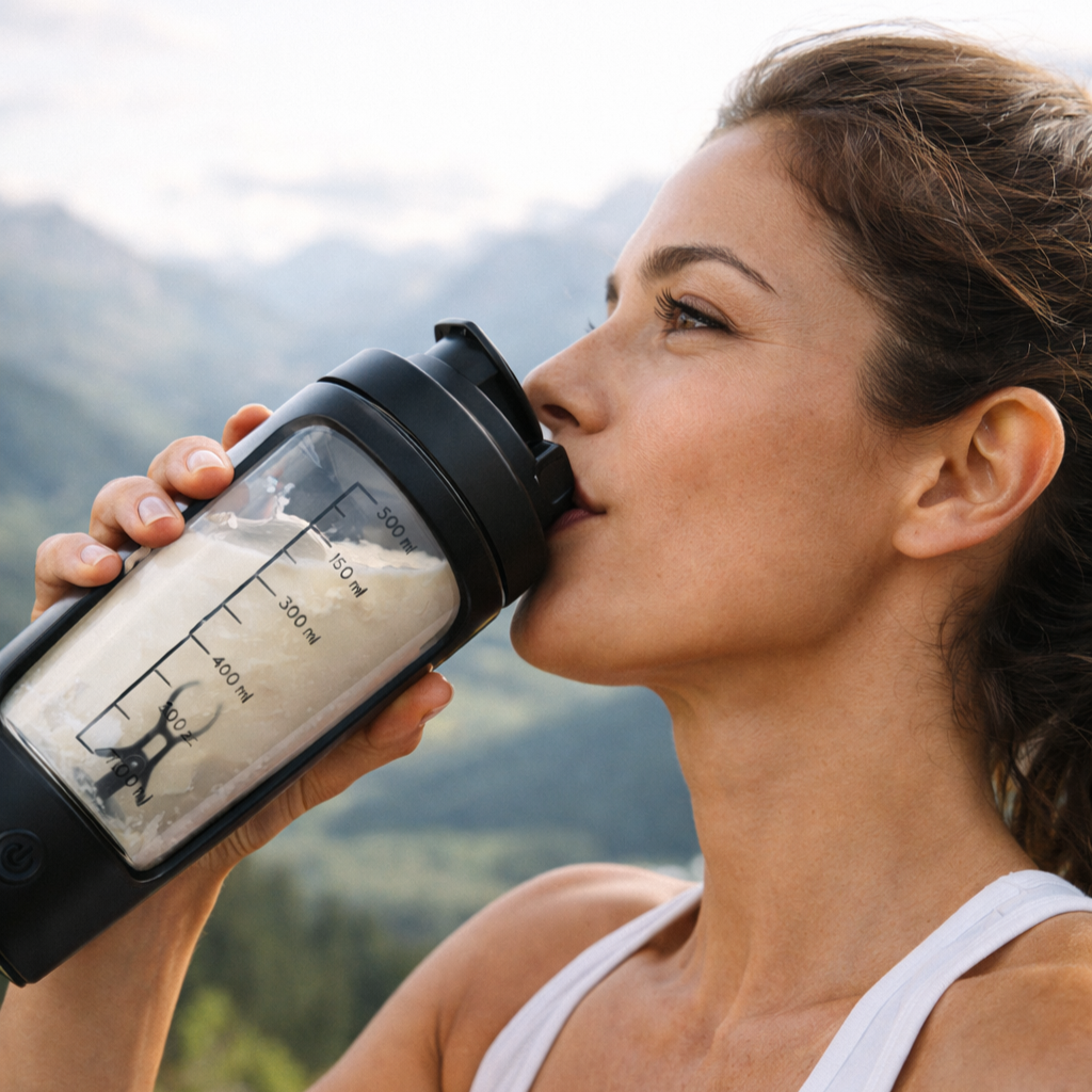 Genau dafür gibt es jetzt die Lösung: Unser Self-Mixing Shaker mischt deinen Proteinshake in Sekunden - vollautomatisch, schnell und ohne Stress.